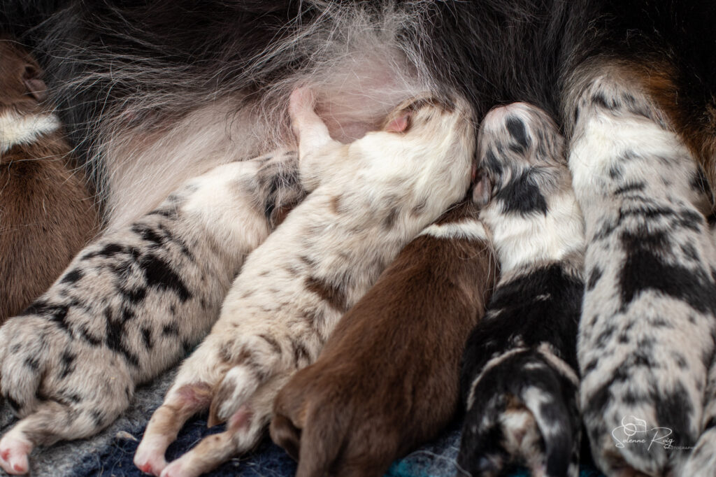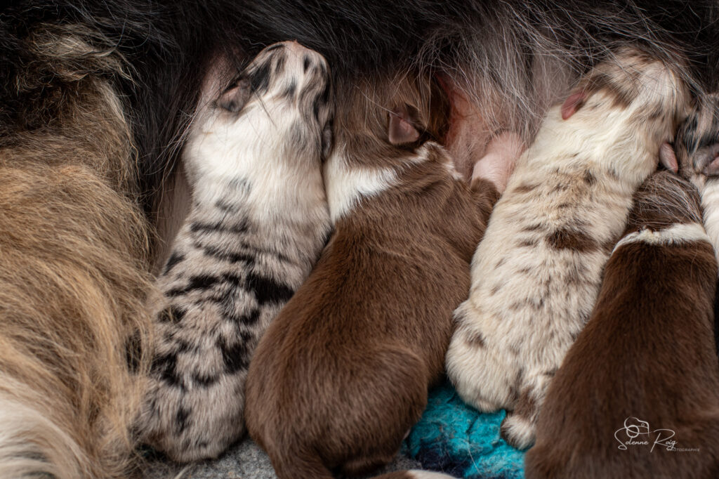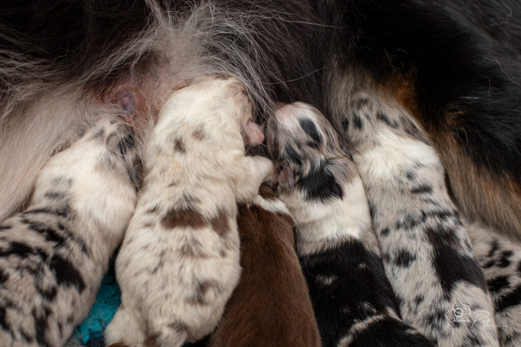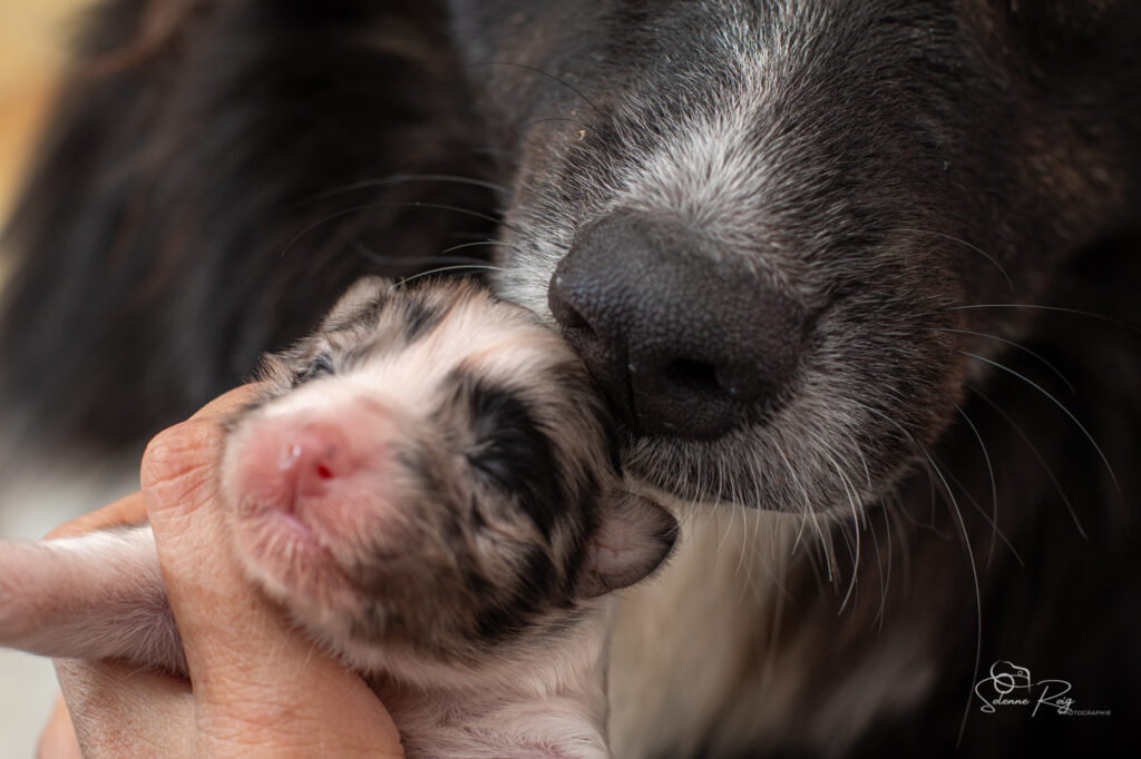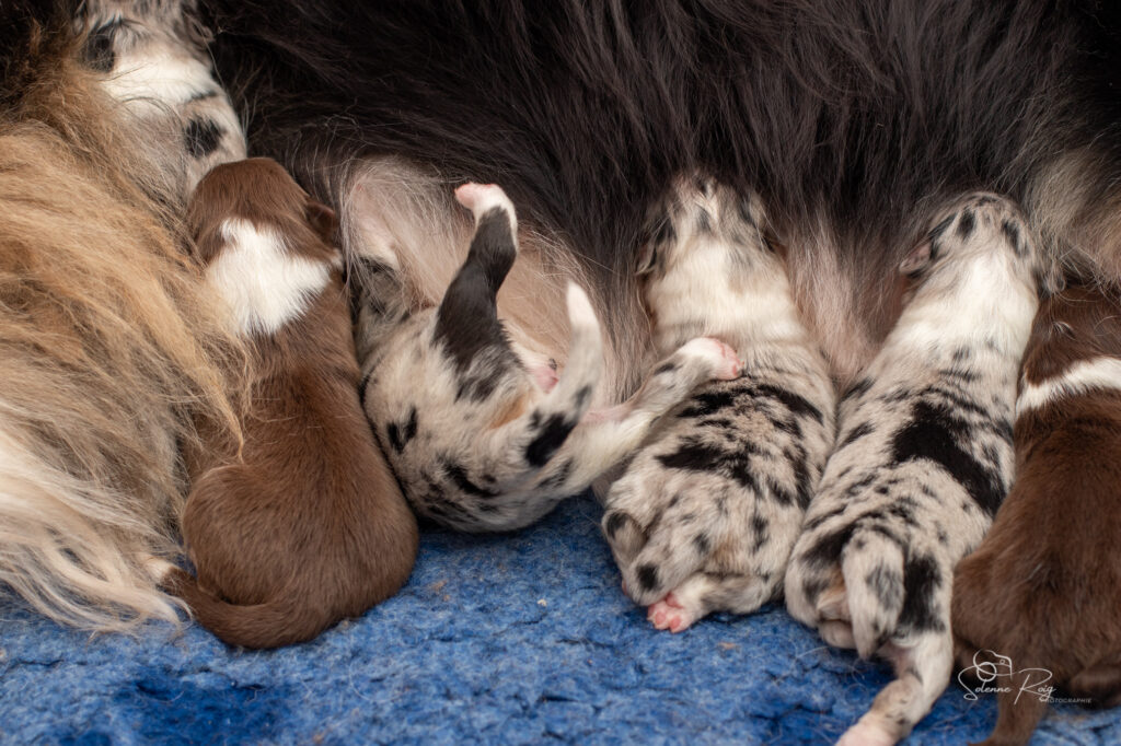 Mais pour le moment, nous avons toujours les yeux et les oreilles fermées, nous vivons donc dans notre monde, seule notre petite truffe peut nous faire sentir l’environnement autour de nous (et nous permettre de trouver facilement les mamelles de maman ! )