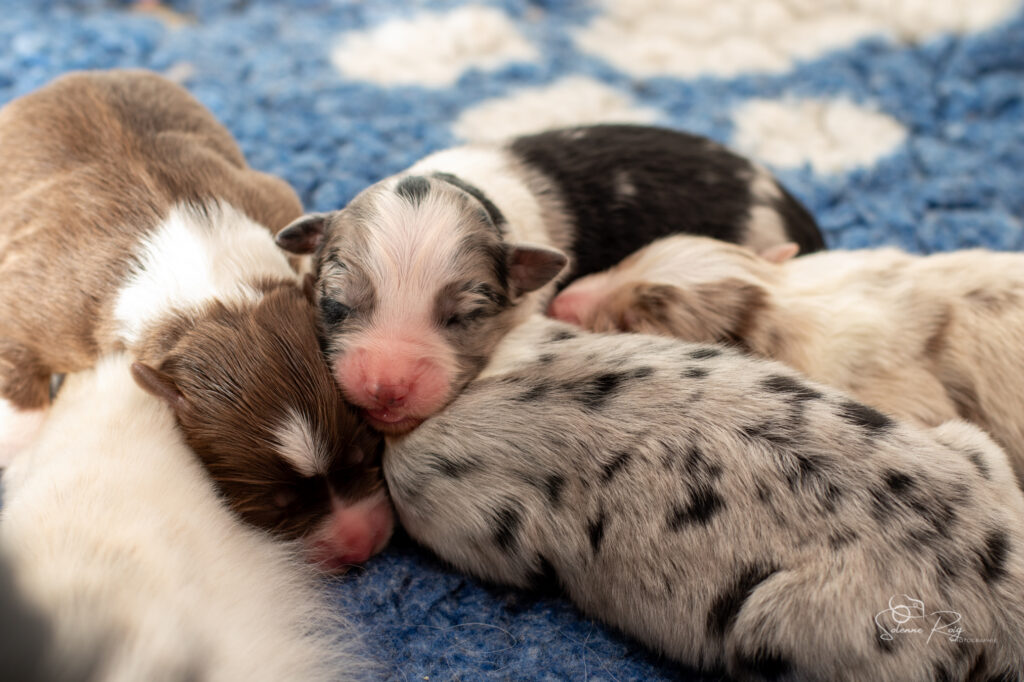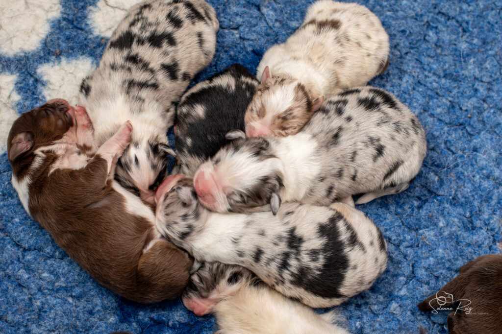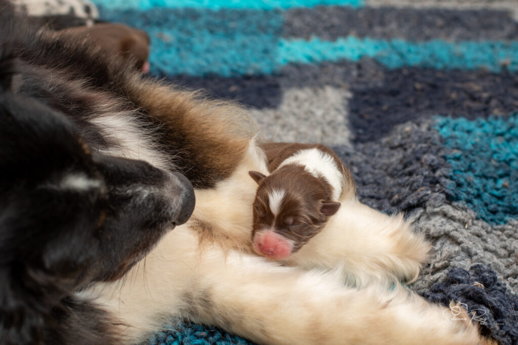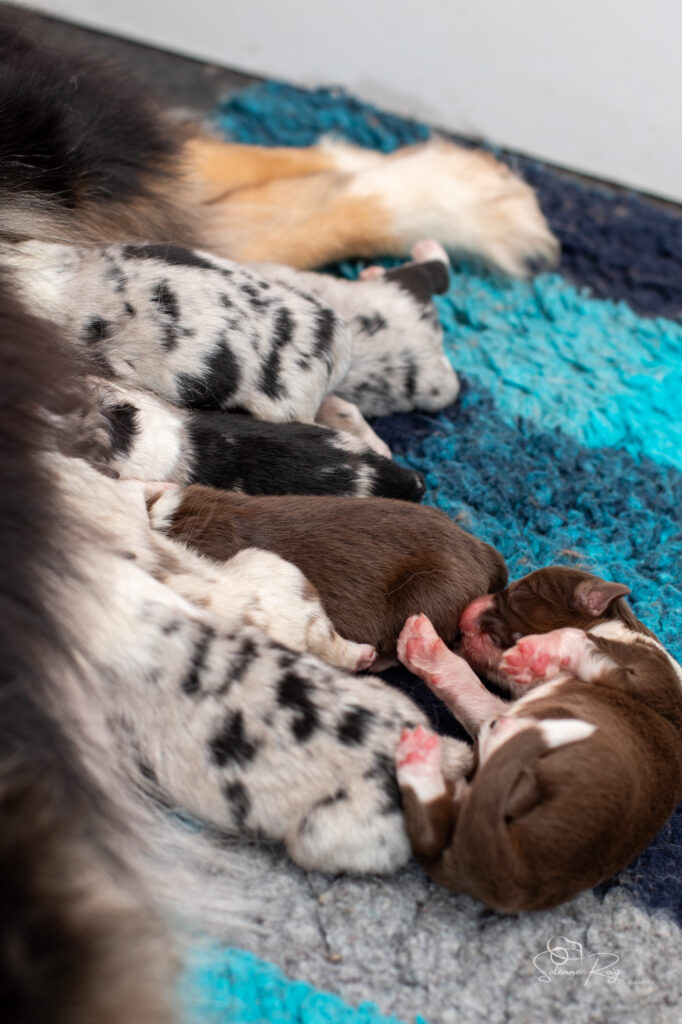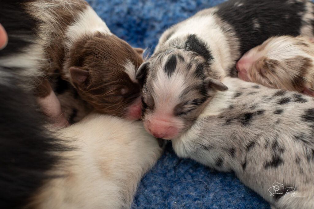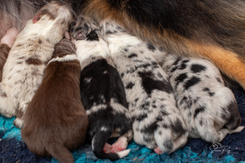 Mais pour le moment, nous avons toujours les yeux et les oreilles fermées, nous vivons donc dans notre monde, seule notre petite truffe peut nous faire sentir l’environnement autour de nous (et nous permettre de trouver facilement les mamelles de maman ! )