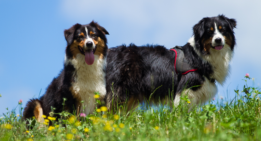 Kiona est THE australienne qui se prend pour un border!! Extrêmement dynamique, joueuse, il faut que ça bouge!! Et comme sa mère, la patience, ce n’est pas son fort!! Kiona est une chienne qui apprend très vite et aime apprendre, très câline, un brin jalouse des chats et de Kiss (surtout quand ils viennent se faire caresser!!) Kiona pratique le cavage, le frisbee et les tricks.